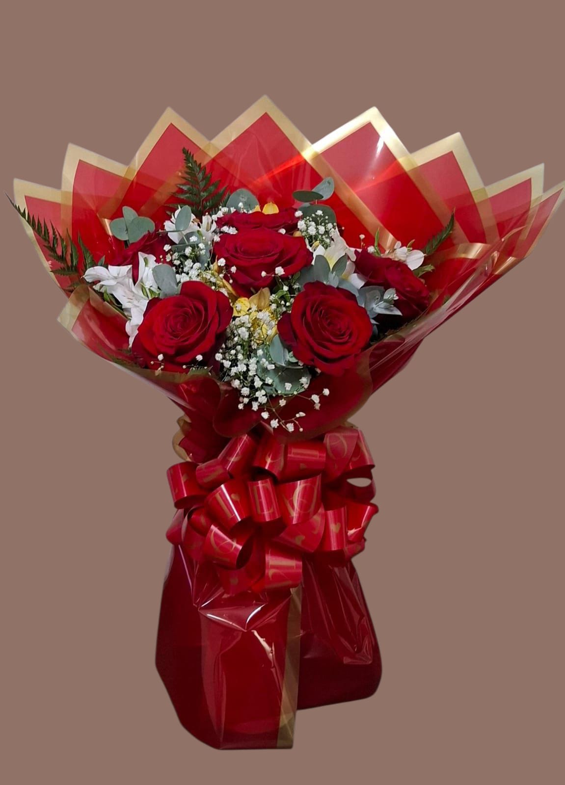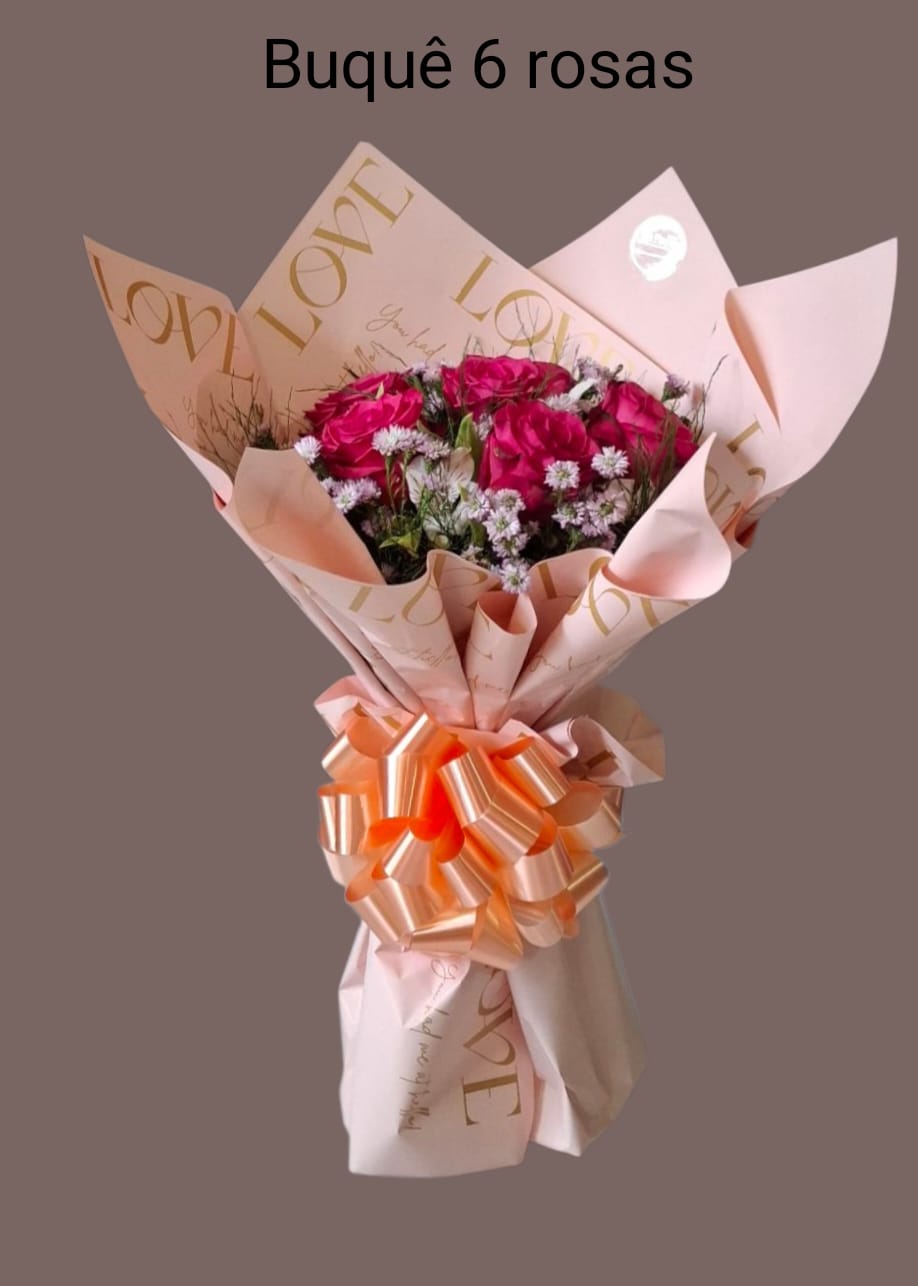 O buquê composto por seis rosas são imponentes e ideais para presentar quem você ama. Assim, é possível surpreender mesmo estando longe.