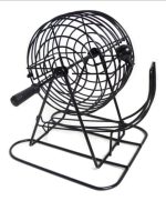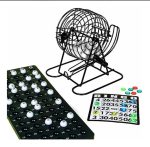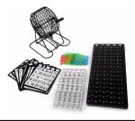 Componentes do jogo: Globo giratório, Tabuleiro numerado, 75 bolas numeradas, 18 cartelas reutilizáveis, 150 marcadores coloridos